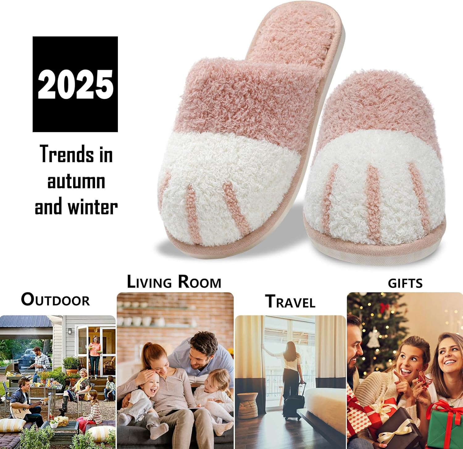 Women’s Cat Paw Cozy Slippers Warm Gifts for Women Men with Memory Foam Trendy Cute Fuzzy Winter House Shoes Indoor Outdoor